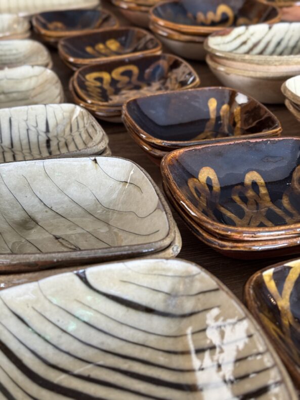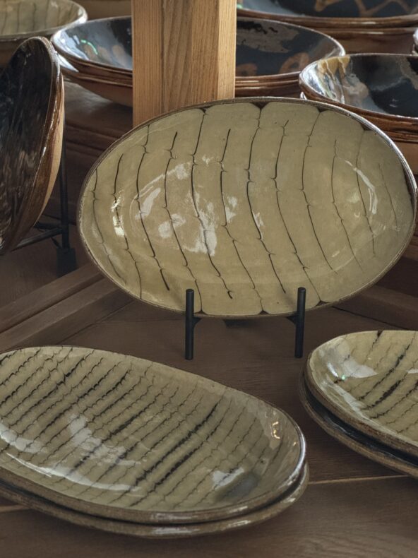 薪窯から生まれるスリップウェアは大胆な文様でありながら、和洋問わずどんな料理をもおおらかに受け止める包容力があります。