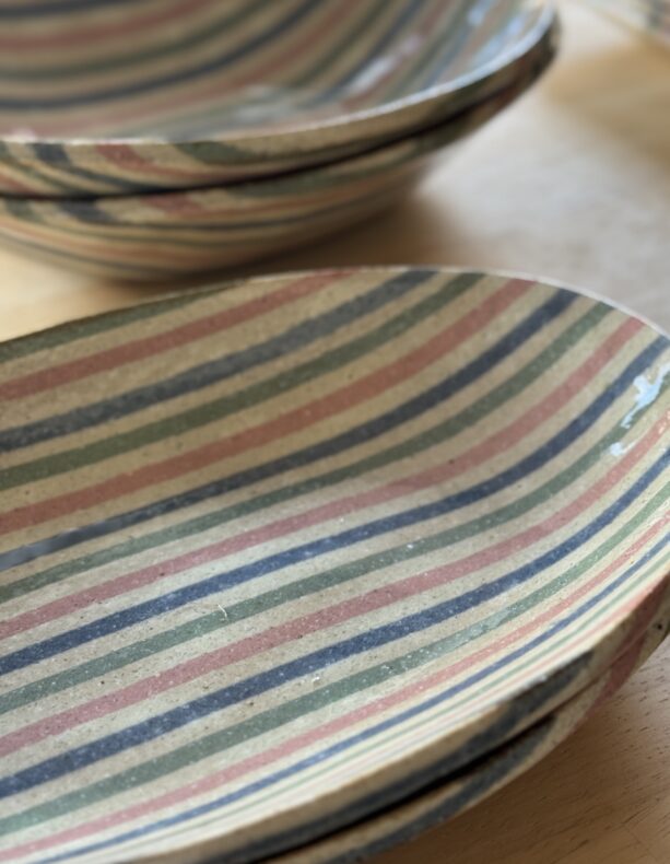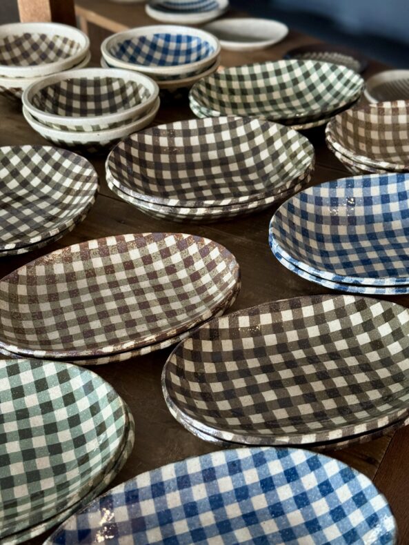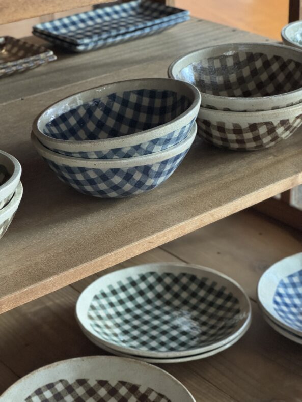 練り込みという技法で生み出されるギンガムチェックやストライプ模様は、土の持つ自然な温かさに洗練された印象を加え、食卓に心地よいリズムと遊び心を添えてくれます。