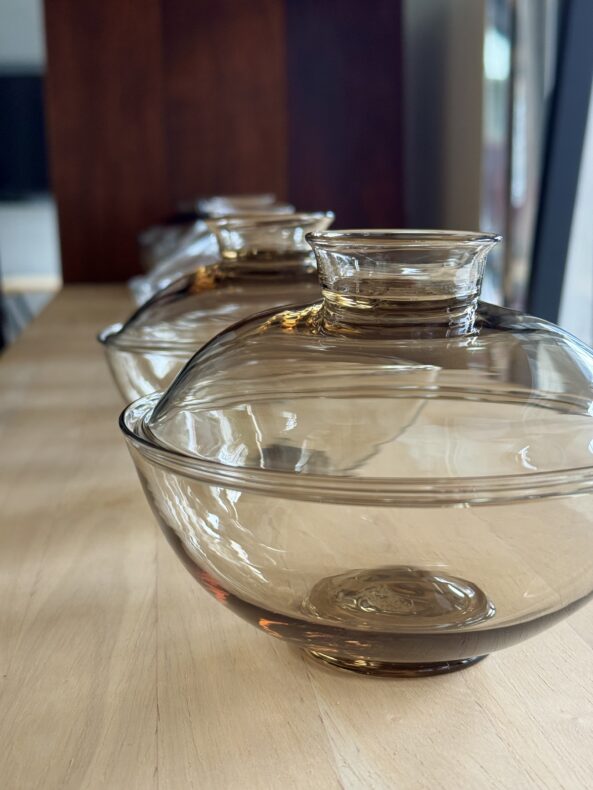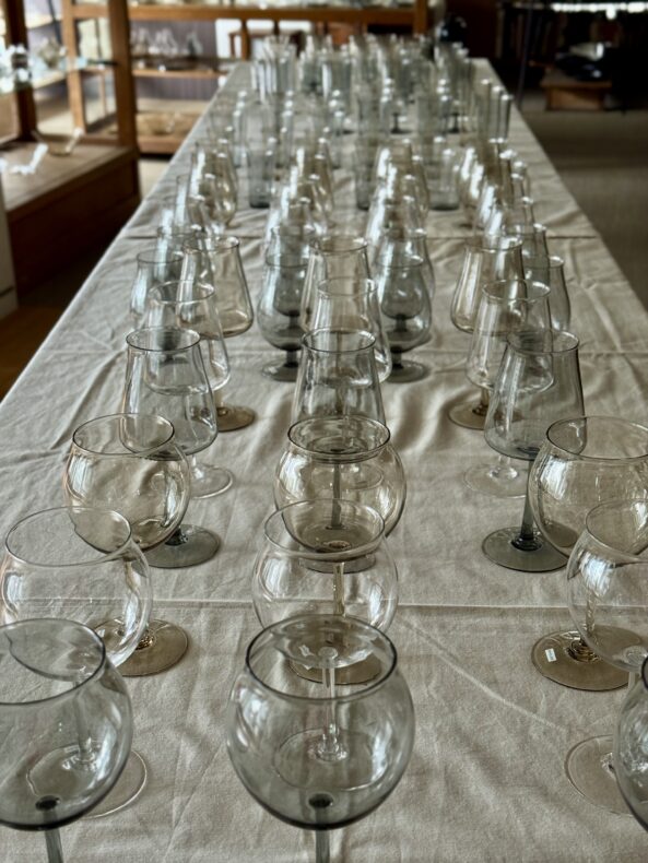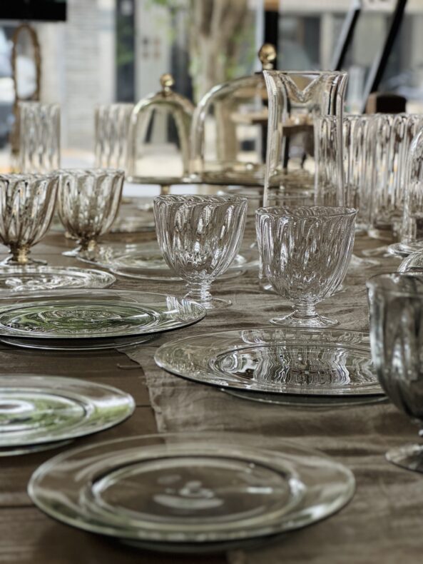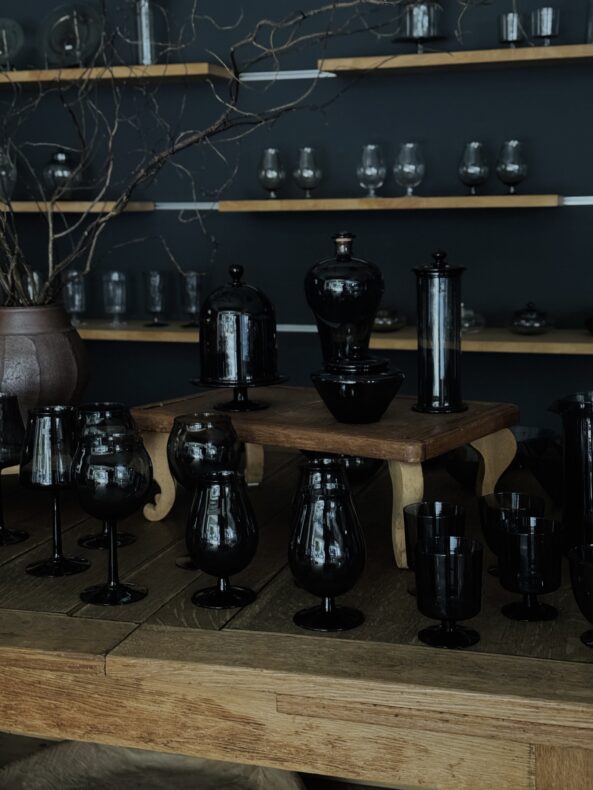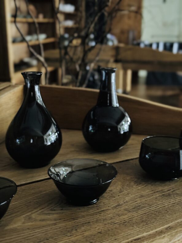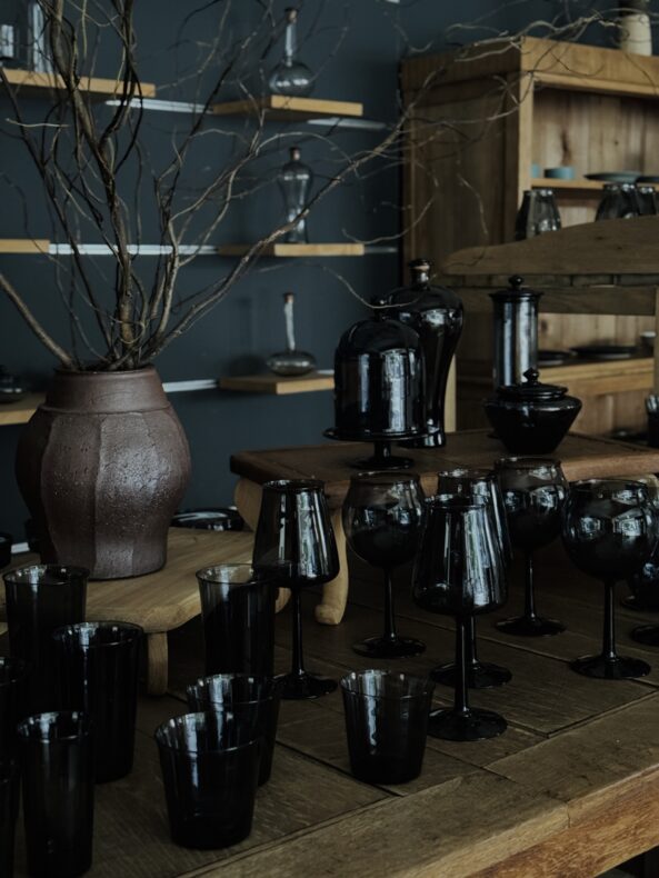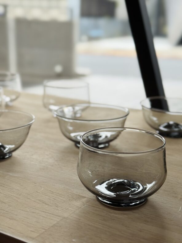 個展では、定番のクリア・アンバー・グレーのグラスやうつわ、蓋物や瓶、花器などの一点ものに加えて、SMLでは初お目見えのブラックをご紹介します。永木さんの美しいデザインの際立つブラックのシリーズに、どうぞご期待ください。